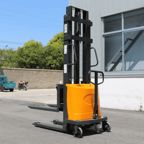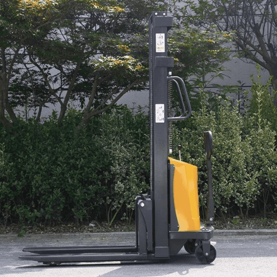 The semi-electric stacker requires the operator to manually push or pull the unit to move it around. This is in contrast to fully electric stackers, which can be driven with an electric motor.