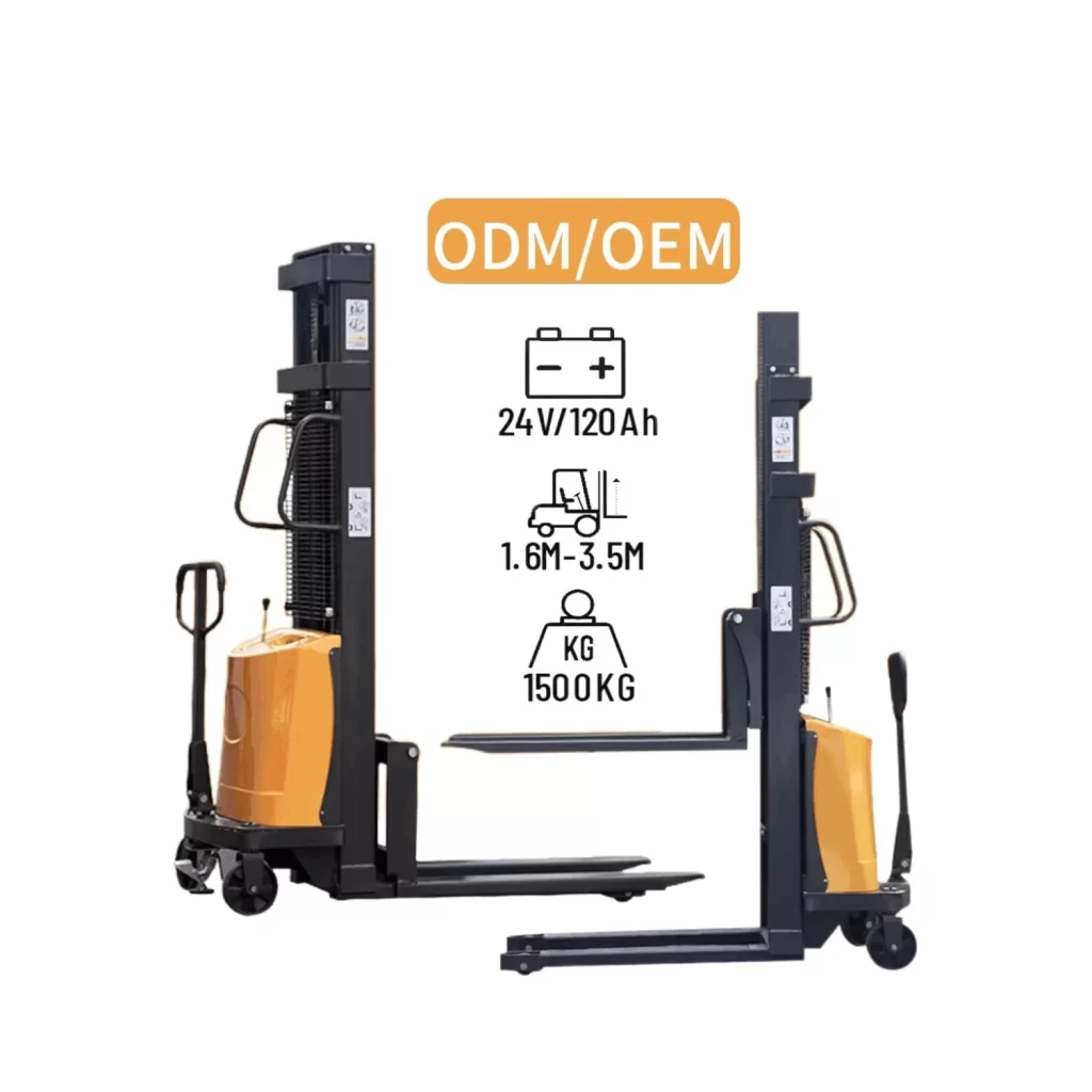 Semi-electric stacker is a type of material handling equipment used in warehouses and other industrial settings. It combines manual and electric functions to lift and stack pallets or other materials. Here’s a breakdown of its features: