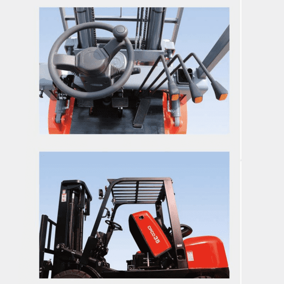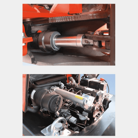 Equipped with casting steering axleThe compact structuresmall deflection under loadanddust-proofandwater-proofdesign endow the forklift with long service life and working reliability