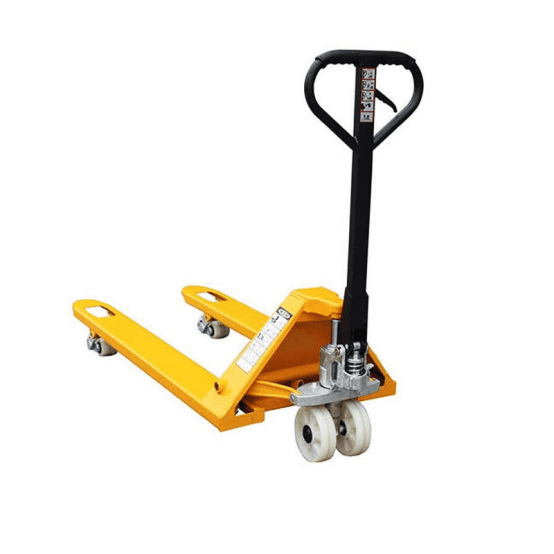 JG Hand Pallet Jacks effortlessly handle the task of moving pallets within your warehouse or distribution center. Designed to cater to various industries and applications, this reliable workhorse is available in multiple models. All of these models share key advantages such as low rolling resistance, low noise levels, and ergonomic design features like large handgrips. With comprehensive warranties that cover hydraulic pumps, frames, chassis, and wearable components, you can trust in the durability and longevity of these hand pallet jacks.