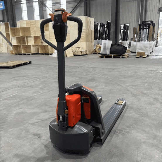Electric Pallet Jack, also known as an Electric Pallet Truck or Powered Pallet Jack, is a type of material handling equipment used to lift and move pallets over short distances within a warehouse or distribution center. It is a motorized version of a manual pallet jack, making it more efficient and less physically demanding to operate.