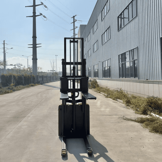 - Walking Feature:The term “walking” refers to the fact that the operator walks behind or alongside the pallet stacker while it is in use. Unlike ride-on forklifts or pallet jacks, the operator walks beside the equipment, guiding it through the workspace. This makes it more maneuverable in tight spaces.