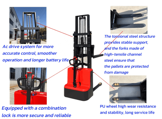 - Lifting Capacity:These stackers can typically handle weights from 1,000 to 3,000 kg (2,200 to 6,600 lbs), depending on the specific model and design.