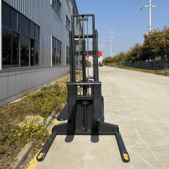 The term “straddle” refers to the stacker’s design, where the legs of the machine are positioned on either side of the load. This design allows it to straddle a pallet and lift it from both sides, making it suitable for a wide range of pallet sizes and configurations.