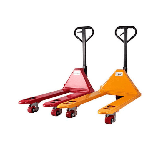 JG Hand Pallet Jacks effortlessly handle the task of moving pallets within your warehouse or distribution center. Designed to cater to various industries and applications, this reliable workhorse is available in multiple models. All of these models share key advantages such as low rolling resistance, low noise levels, and ergonomic design features like large handgrips. With comprehensive warranties that cover hydraulic pumps, frames, chassis, and wearable components, you can trust in the durability and longevity of these hand pallet jacks.
