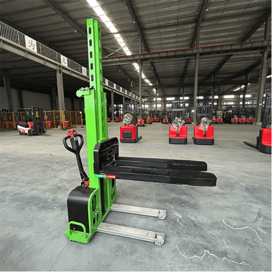 - Semi electric type self liting stacker,the liting and lowering speed is adjustable, according to the users’ needs.