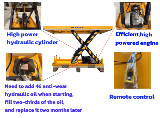 - Semi-Electric Operation:The lifting action is powered by an electric motor or hydraulic pump, but some aspects, like positioning or moving the load, may require manual effort. Unlike fully electric models, a semi-electric lift usually doesn’t have motorized mobility.
