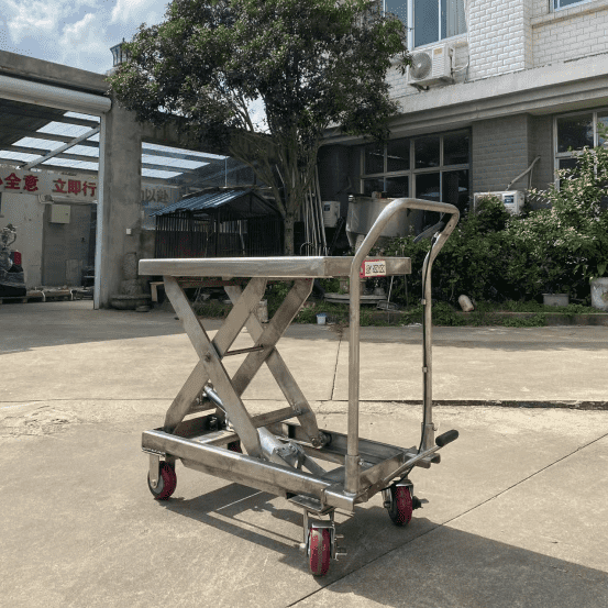 A Stainless Steel Scissor Platform Hand Trolley is a manually operated lifting and transporting device designed to lift, move, and position materials or goods. It is built with a stainless steel frame for durability and corrosion resistance, making it ideal for industries requiring high hygiene standards or exposure to harsh environments.